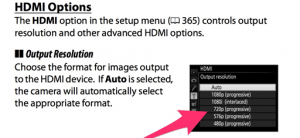 - Not all cameras support a 720p HDMI output. Additionally, some cameras HDMI output is linked to the capture resolution and cannot be adjusted individually.