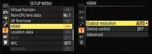- If Vufine does not display when connected to your camera, you may need to check the HDMI output settings on you camera. For more specifics about your individual model, refer to your camera manual.